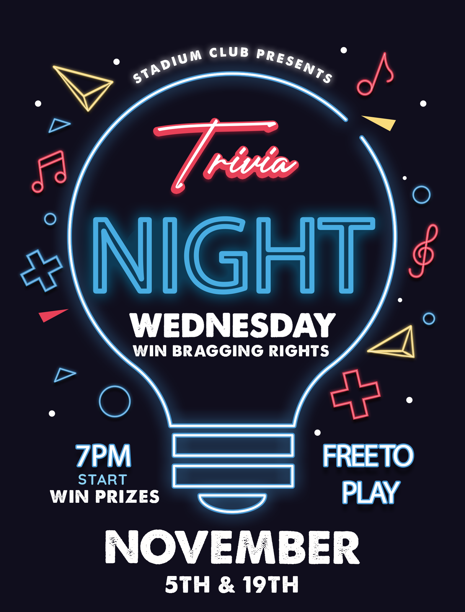 Stadium Club also features great live music on the weekends and now Acoustic Thursdays.
